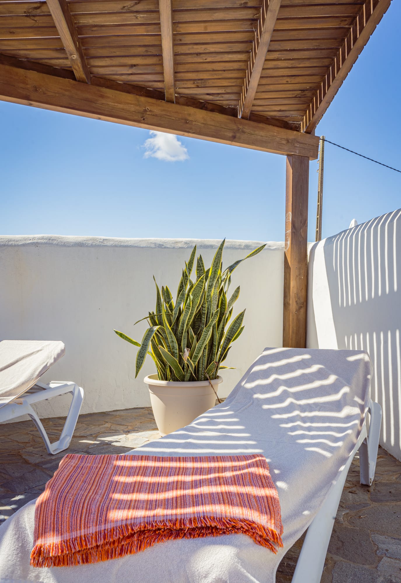 Autour de la maison, des places assises confortables avec des parasols et des zones ombragées invitent à la détente.