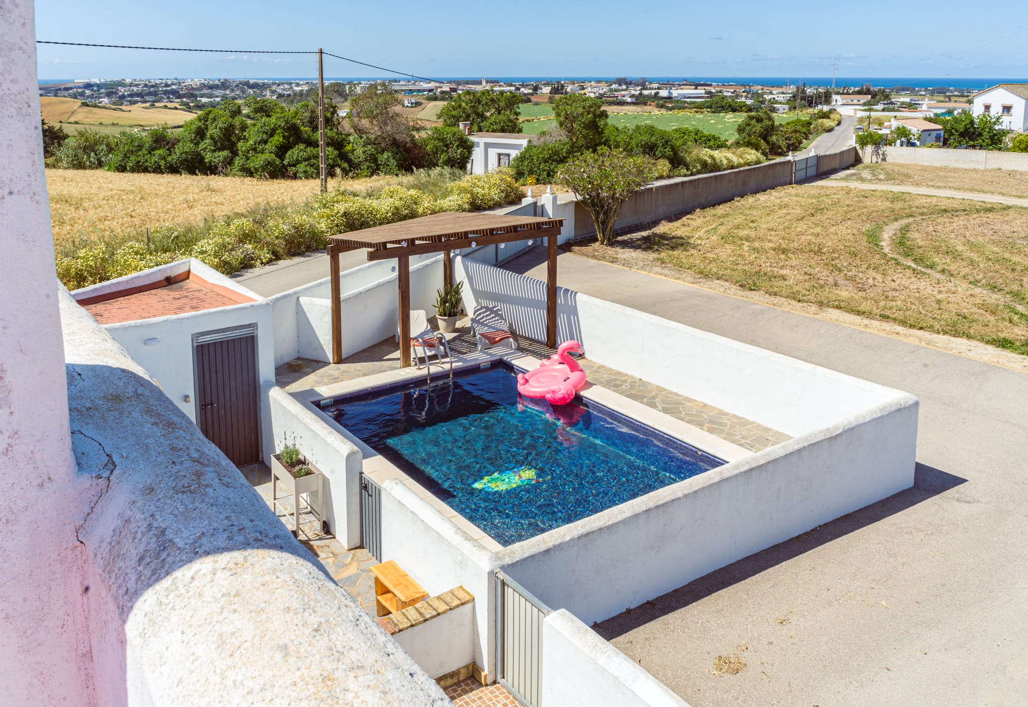 Une pergola offre de l'ombre - parfait pour passer toute la journée à se détendre au bord de la piscine.